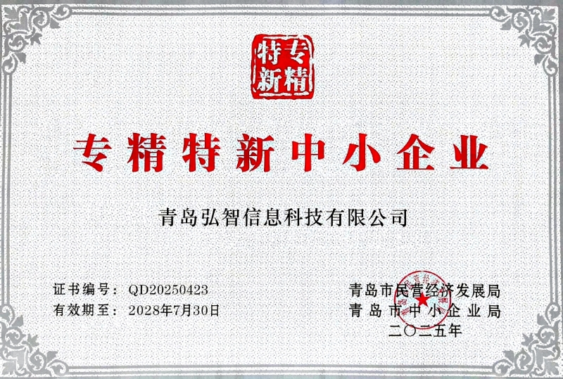 08-21 青島弘智信息科技有限公司再度榮膺"專(zhuān)精特新中小企業(yè)"稱(chēng)號(hào)——以創(chuàng)新驅(qū)動(dòng)發(fā)展,以專(zhuān)業(yè)鑄就卓越